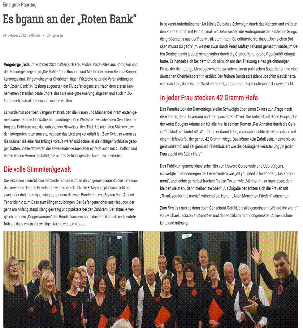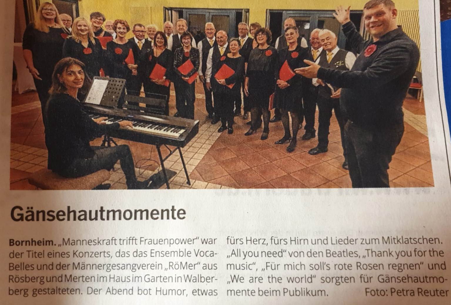 Chorkonzert Manneskraft trifft Frauenpower am 19.10.2022 Haus im Garten Walberberg